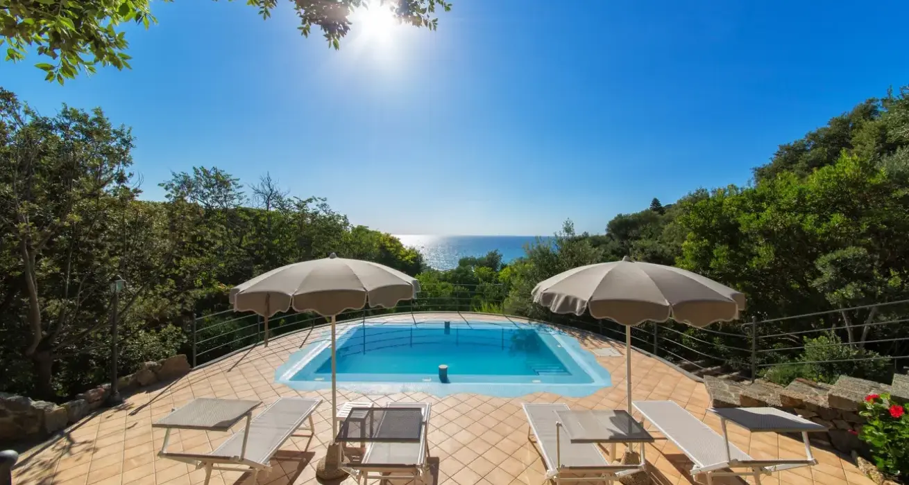 Surrounded by lush Mediterranean vegetation, Villa Acquazzurra is an elegant sea-view residence that blends comfort, privacy, and natural beauty. Its spacious terraces open directly onto the shimmering sea, offering guests a truly relaxing and scenic stay.