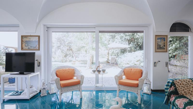 The expansive garden, dotted with fragrant flowers and fruit trees, completes the magical atmosphere of Villa Sylma. A true luxury hideaway, it offers the perfect setting to unwind, savor long summer days, and explore the timeless beauty of Anacapri.